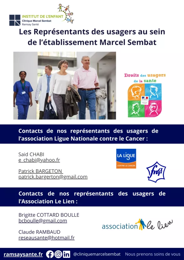 Voici les coordonnées pour contacter directement les représentants des usagers : (horaire de permanences : 09h30 > 17h30)